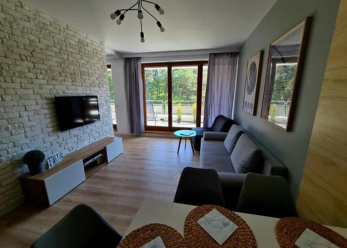 Apartament Jurata Centrum Daire, Shelter Zaragoza - Center of Resistance Jastarnia'a 7 km mesafede, ücretsiz Wi-Fi'ye sahip konaklama birimleri sunmaktadır. 4 konuk ağırlayabilen bu daire 2 yatak odası ve mutfak içerir.